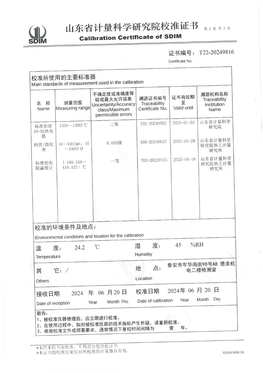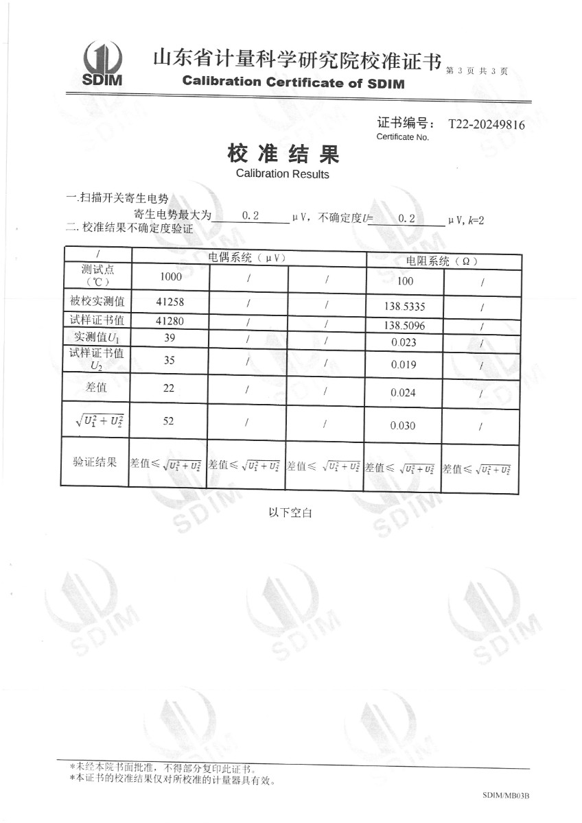 | 上一條:廉金屬熱電偶檢定爐(300~1200℃)校準(zhǔn)證書 | 下一條: DY-HT1D-100C超低溫黑體輻射源 |