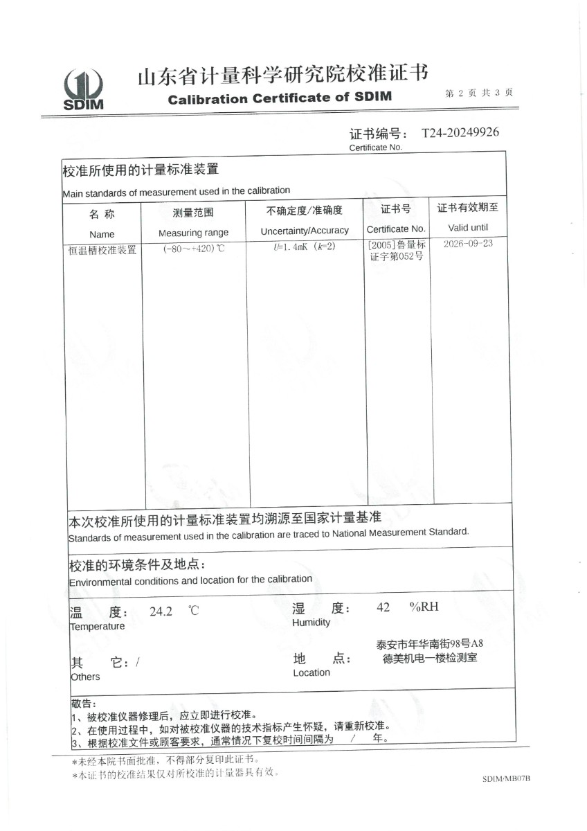 便攜式恒溫槽(0~95℃)校準證書 2024-6-26 本文被閱讀 5939 次
