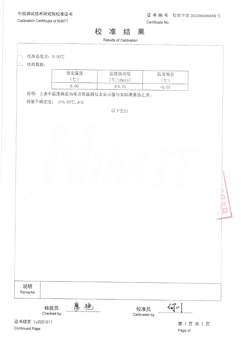 零點恒溫器校準(zhǔn)證書