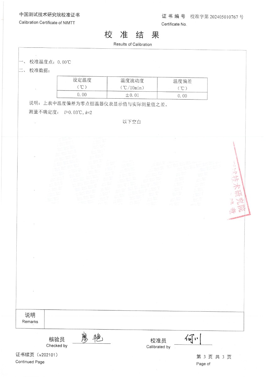 零點恒溫器校準證書 2024-6-27 本文被閱讀 6366 次