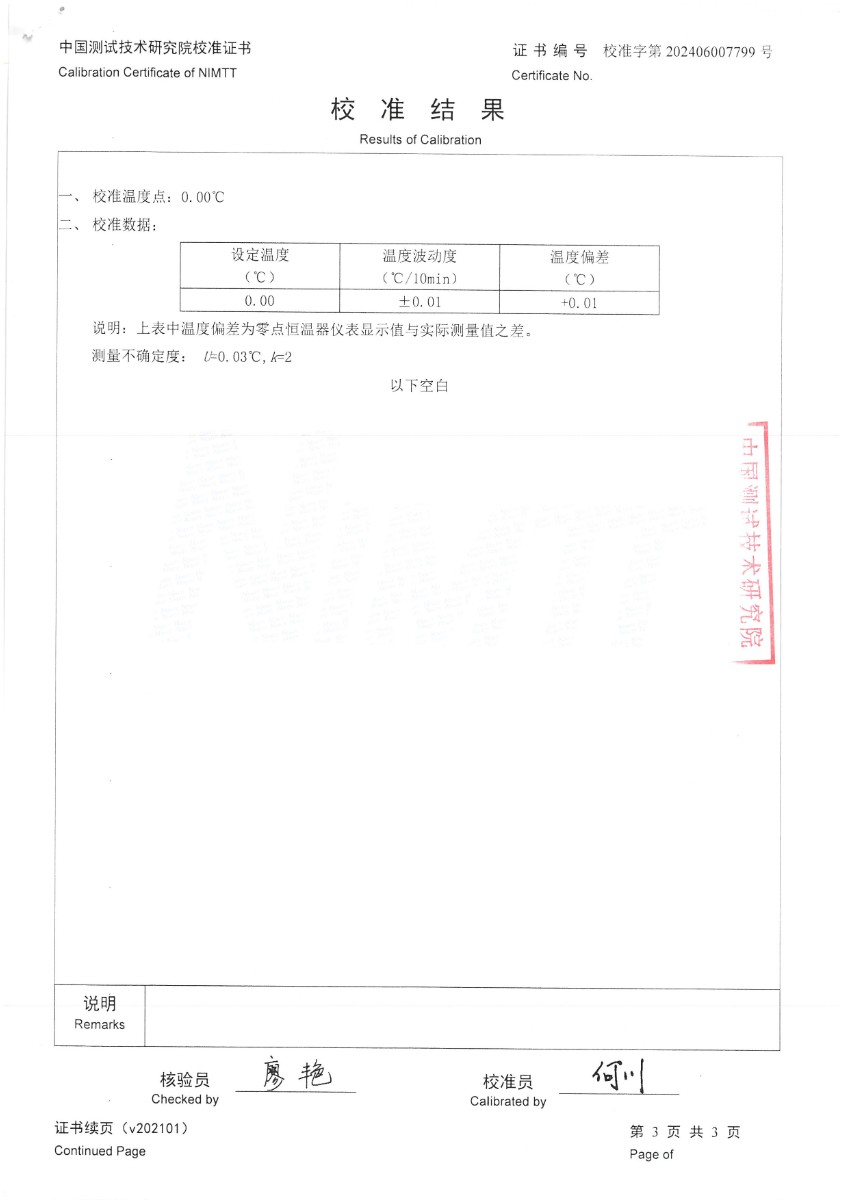 零點恒溫器校準(zhǔn)證書 2024-7-1 本文被閱讀 5996 次