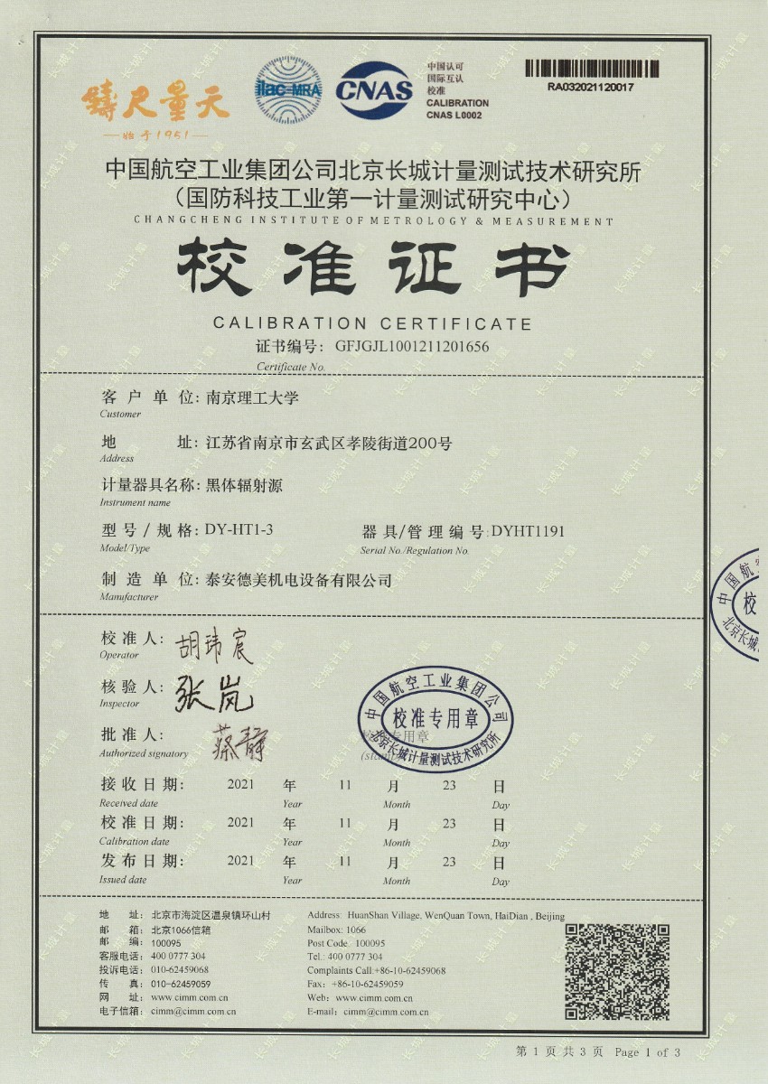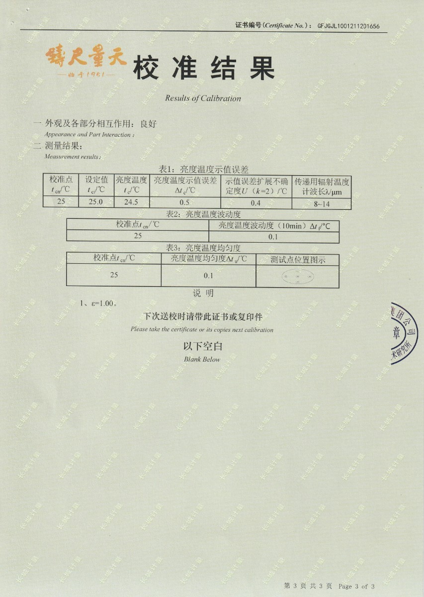 | 上一條:南京理工大學(xué)-黑體輻射源校準(zhǔn)證書10-60℃ | 下一條:零點恒溫器校準(zhǔn)證書 |