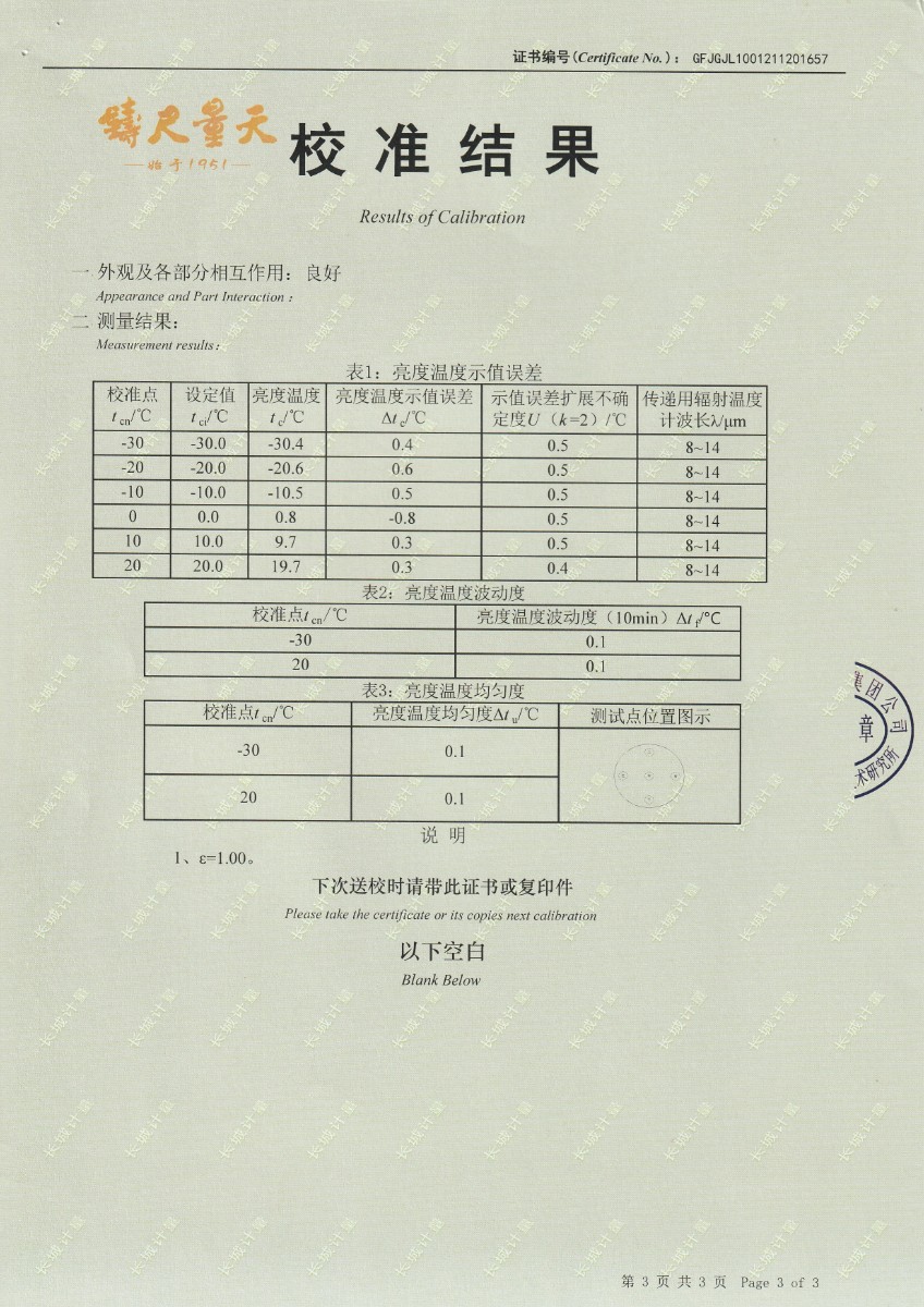 | 上一條:南京理工大學(xué)-黑體輻射源校準(zhǔn)證書25℃ | 下一條:零點恒溫器校準(zhǔn)證書 |