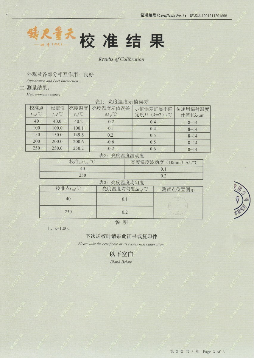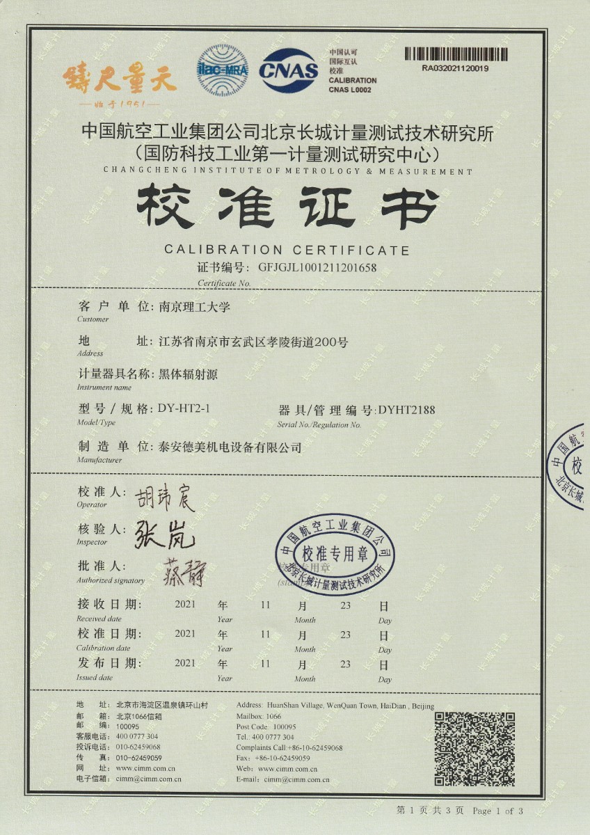 南京理工大學-黑體輻射源校準證書40-250℃ 2021-12-4 本文被閱讀 13592 次