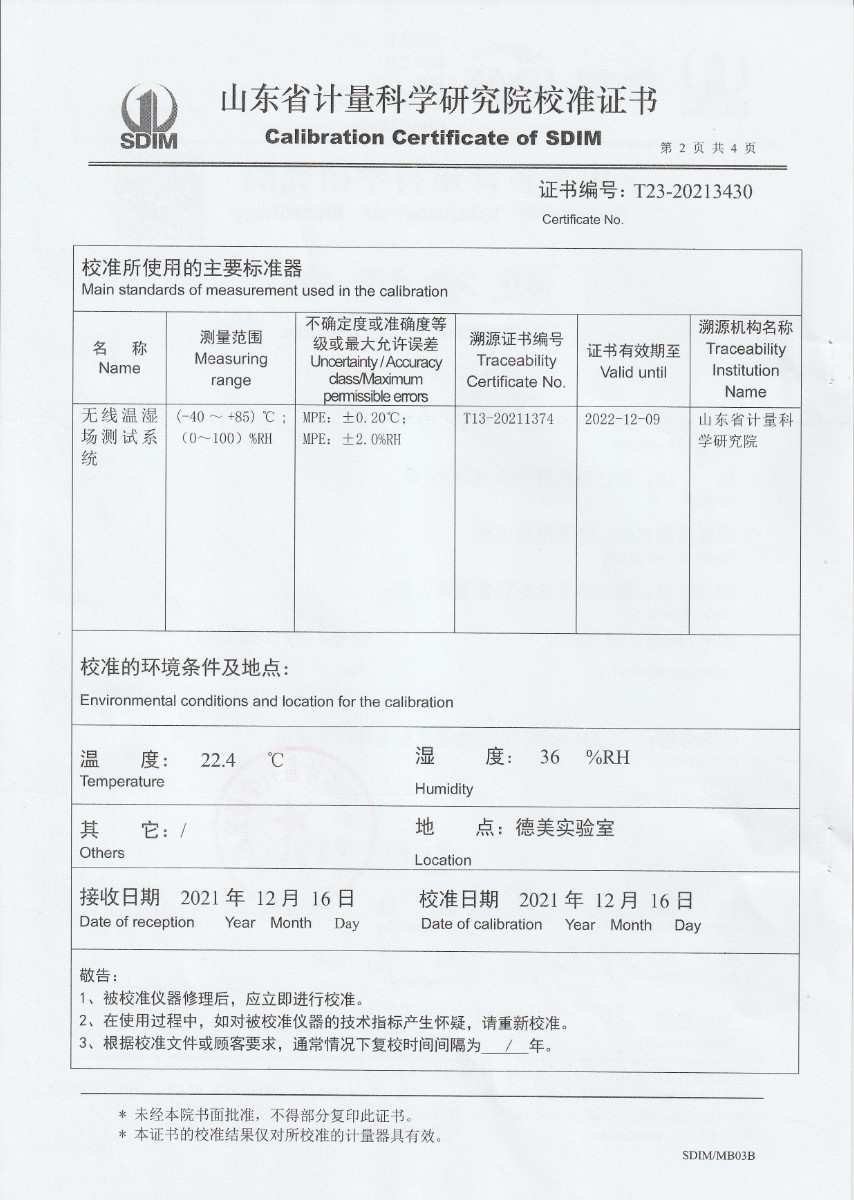 上一條:安徽晶科能源有限公司-溫濕度檢定箱下一條:溫濕度檢定箱(-5~65℃)校準(zhǔn)證書