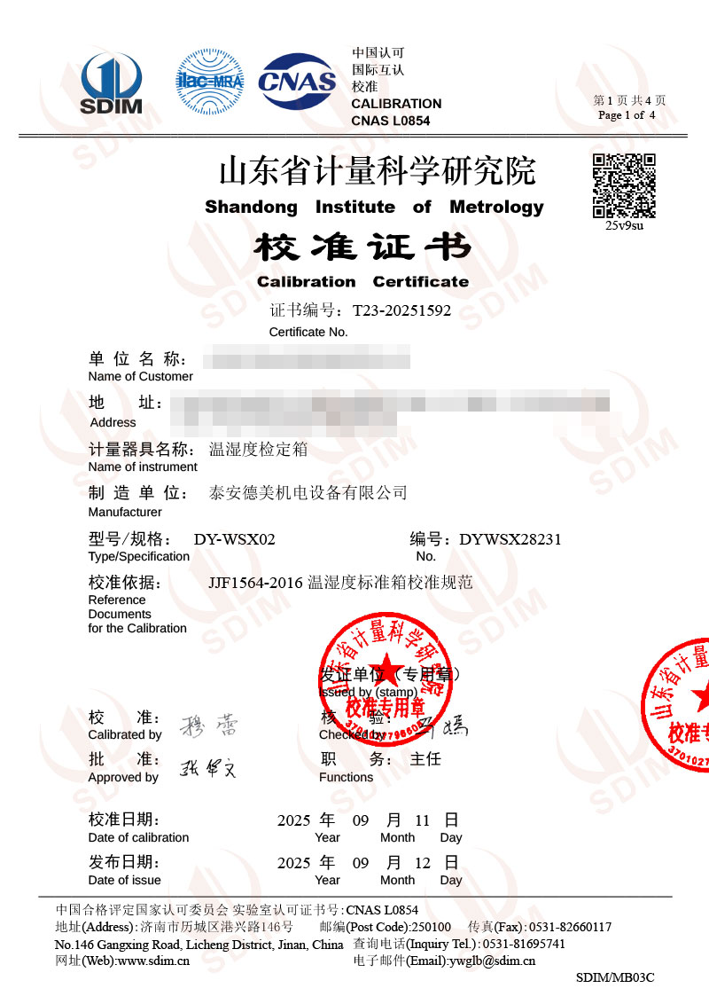 | 上一條:輻射源黑體爐(室溫+5-300℃)校準(zhǔn)證書(shū) | 下一條:溫濕度檢定箱(-5~65℃)校準(zhǔn)證書(shū) |