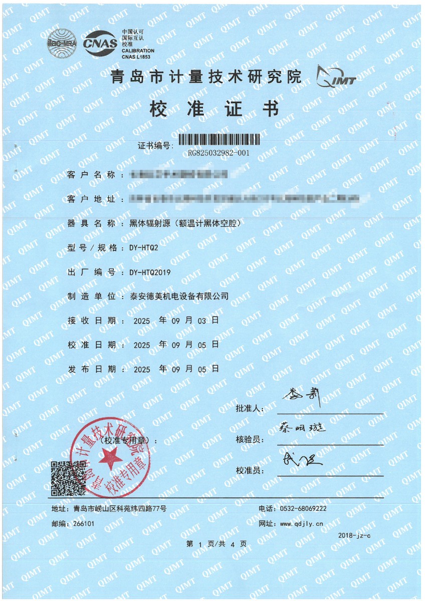 額溫計(jì)黑體空腔-校準(zhǔn)證書 2025-9-23 本文被閱讀 1527 次