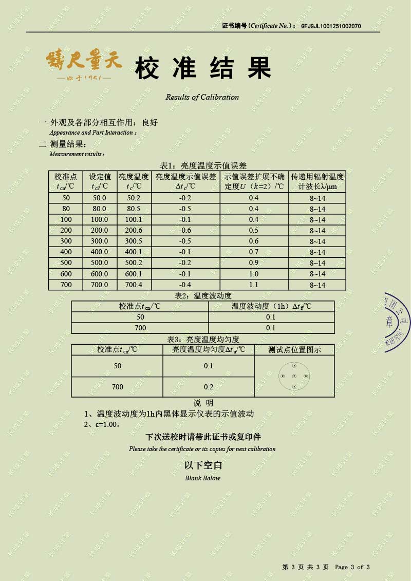 中溫腔式黑體輻射源(50-700℃)校準(zhǔn)證書 2025-10-30 本文被閱讀 242 次