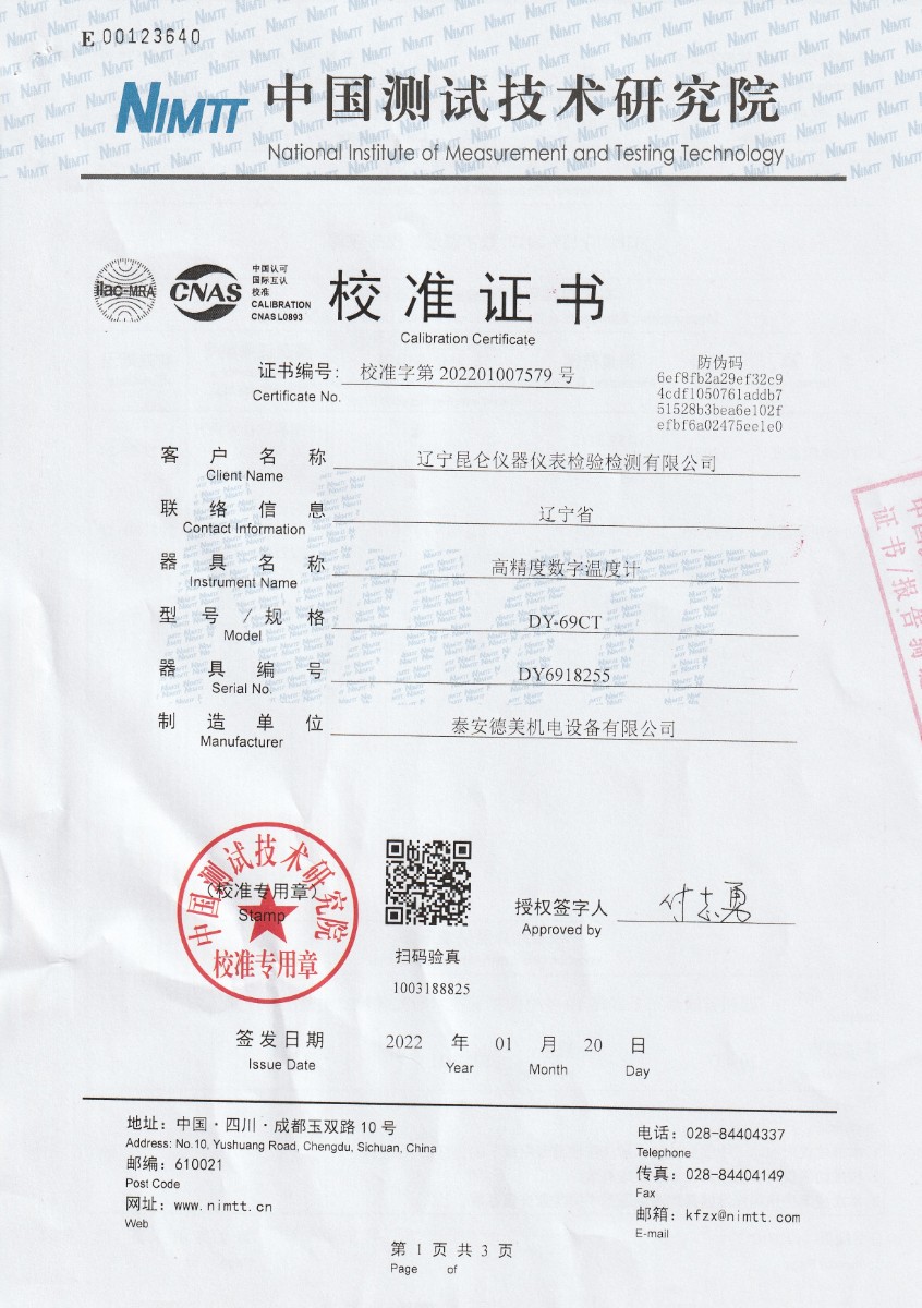 遼寧昆侖儀器儀表檢驗檢測有限公司-高精度數(shù)字溫度計 2022-2-15 本文被閱讀 13434 次