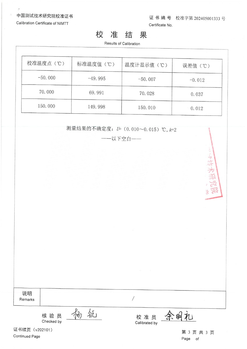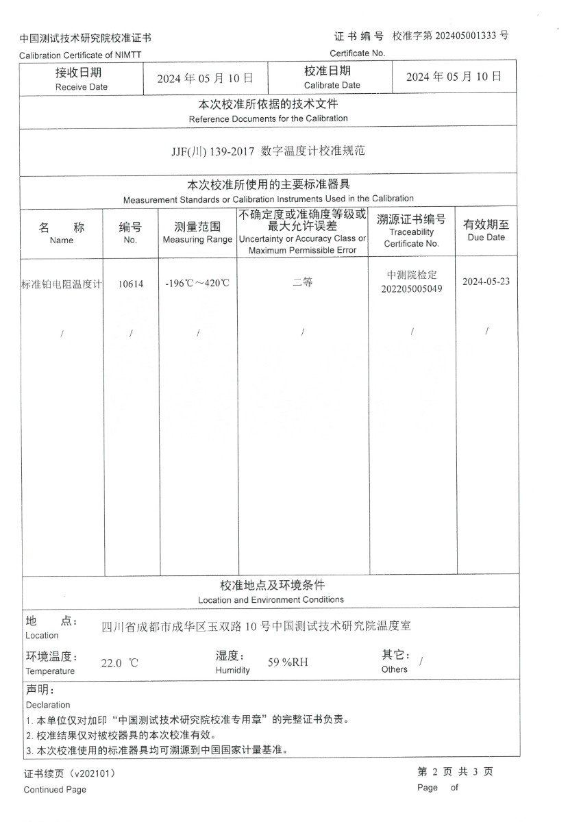 高精度數(shù)字溫度計校準證書 2024-5-14 本文被閱讀 6165 次